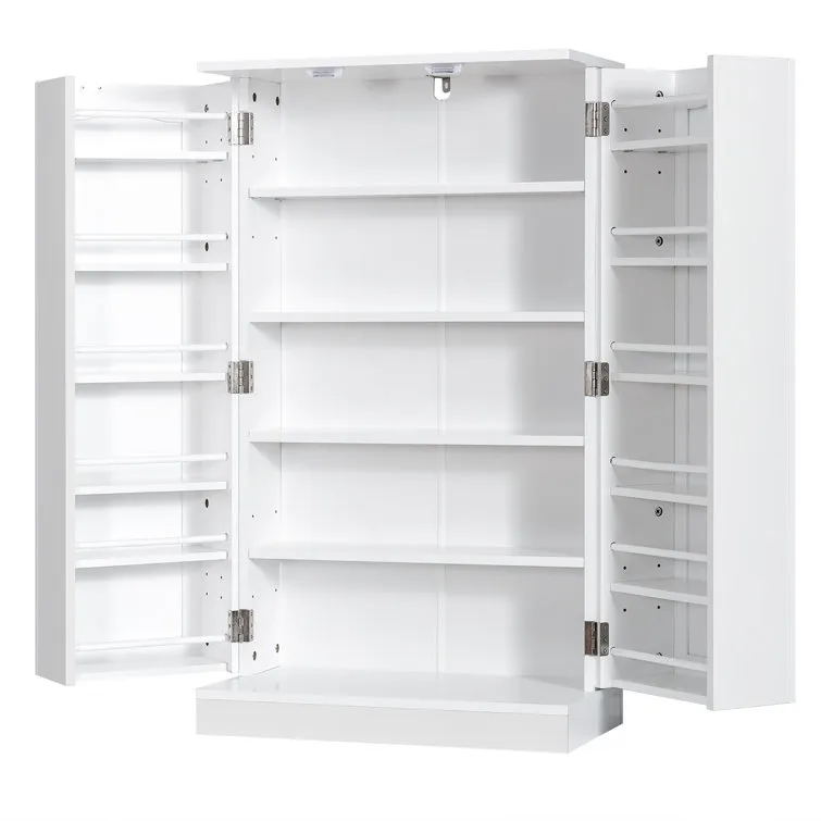 Do you spend your days in a narrow kitchen with very few places to put your kitchen supplies? Then add extra storage space to your kitchen or dining room with our multi-purpose kitchen pantry cabinet. This cabinet consists of 17 storage shelves, 12 of which are mounted on the doors, greatly saving space. The 6-height adjustable shelves can be adjusted to 18 fixed positions, allowing you to customize the appropriate storage space according to the size of the items. Therefore, this cabinet helps you organize your kitchen items and prevent clutter. In addition to practical storage space, the cabinet has a simple and stylish look that can be matched with different furniture styles of different rooms. More importantly, the selected material, exquisite workmanship, as well as stable structure guarantee a long service life. And the anti-toppling protection on the back ensures safe use.