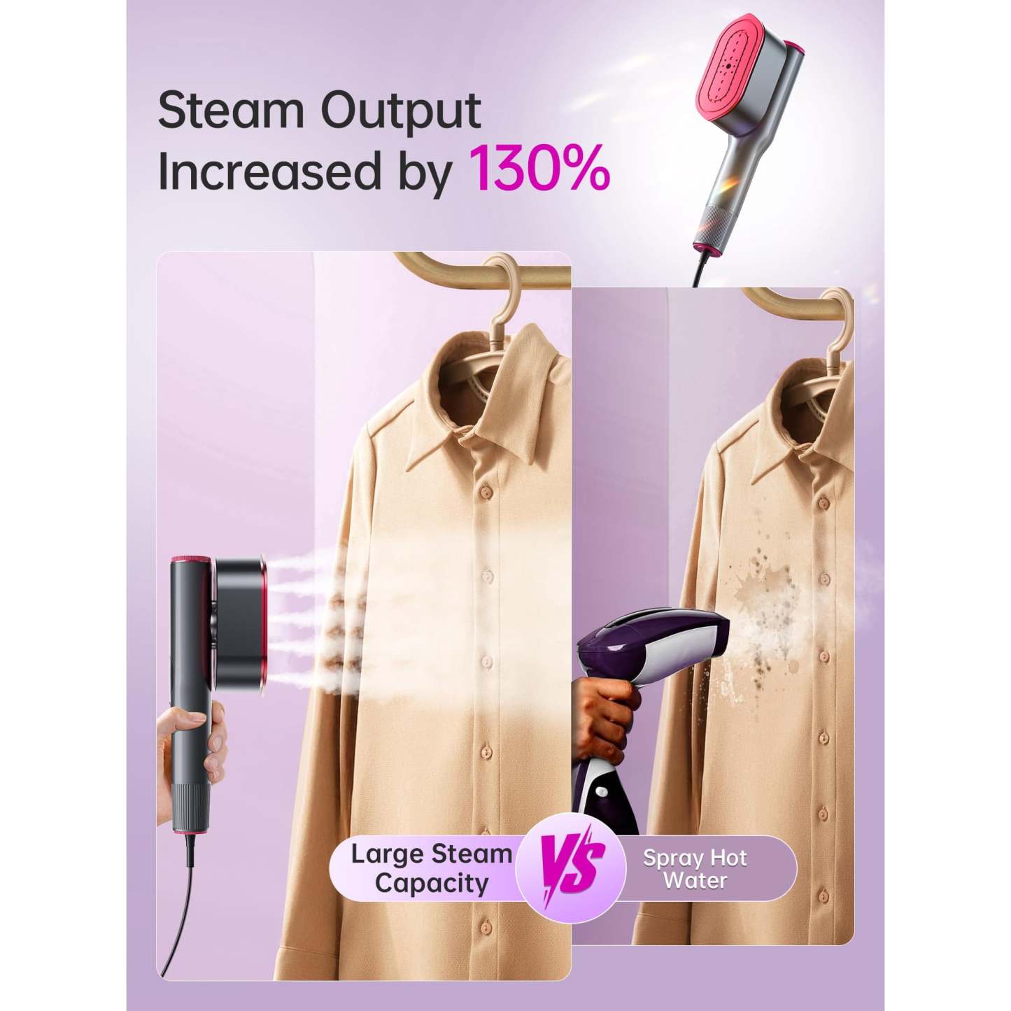 - Advanced wrinkle removal technology: The ceramic heat panel delivers consistent steam distribution, penetrating fabrics quickly to smooth wrinkles without damage. The dry ironing function further refines results, perfect for last-minute touch-ups.