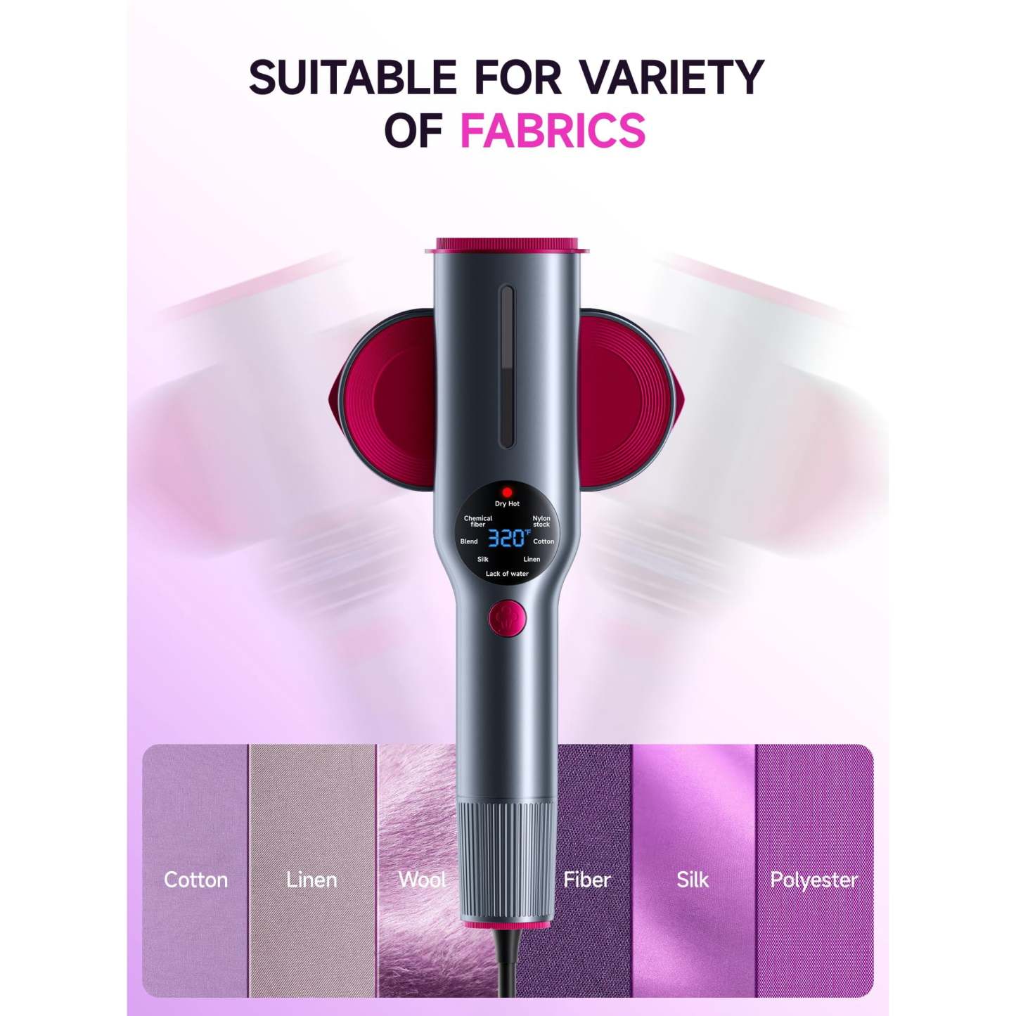 - Rapid heating with customizable settings: Achieve optimal results in just 15 seconds with 1200W fast heating. Seven adjustable modes cater to fabrics like cotton, linen, silk, and synthetics, providing precise temperature control for delicate or sturdy materials.