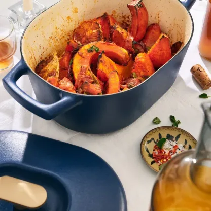 - Oval shape is ideal for roasts and larger cuts of meat.