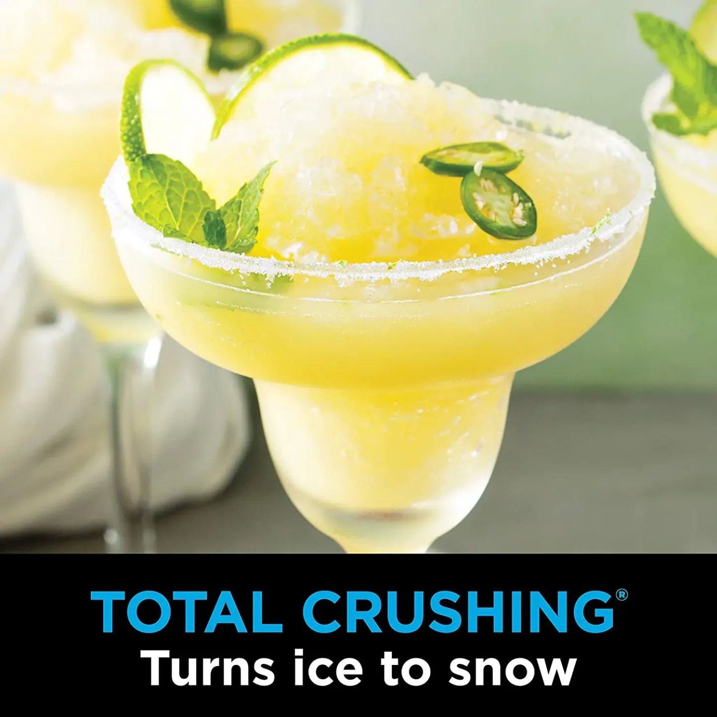 BLENDING PITCHER: 72 oz. pulverizes ice to snow in seconds for creamy frozen drinks and smoothies. 64 oz. max liquid capacity