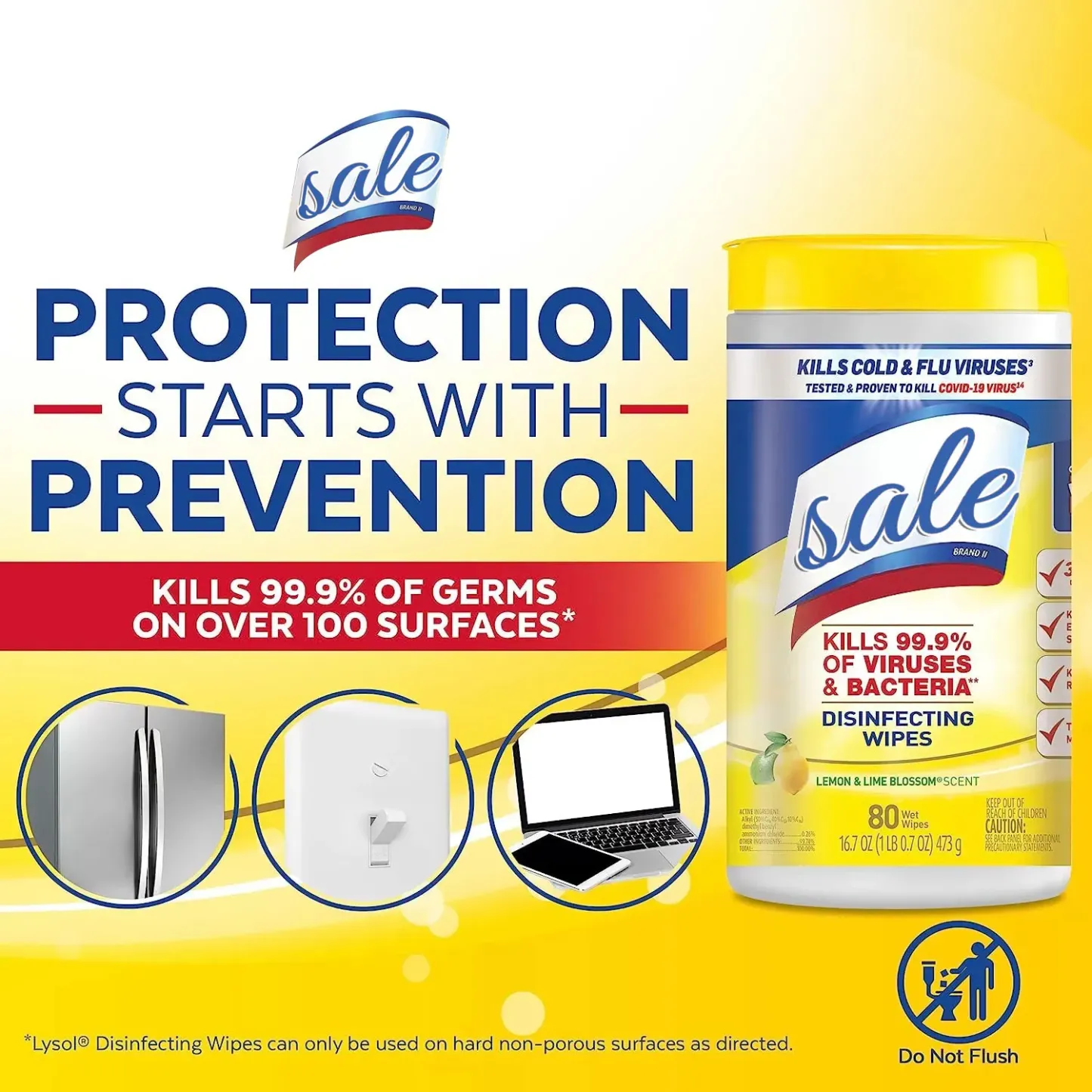 - DISINFECTING WIPES FOR CLEANING: Disinfect and deodorize with the fresh smell of Lemon and Lime Blossom Lysol Disinfecting Wipes. Safely wipe down spills and remove allergens, including pet dander, dust mites, and pollen.