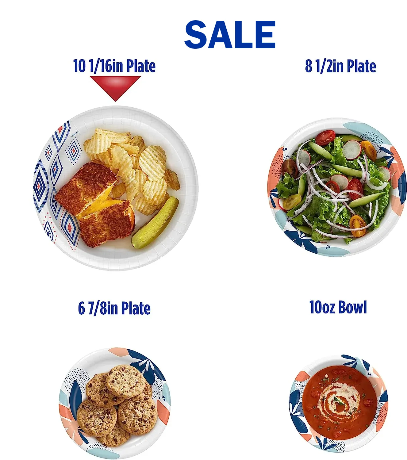 10 Inch Paper Plates, Size Printed Disposable Plate, 204 Count (3 Packs of 68 Plates)