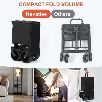 Collapsible Folding Wagon, Beach Wagon Cart Heavy Duty Foldable with Big Wheels