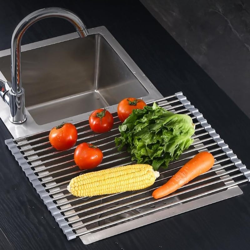 - The hollow-out design allows water to drain fast, and the sink rack will keep our utensils away from dirty water in the pool and prevent bacterial from growing