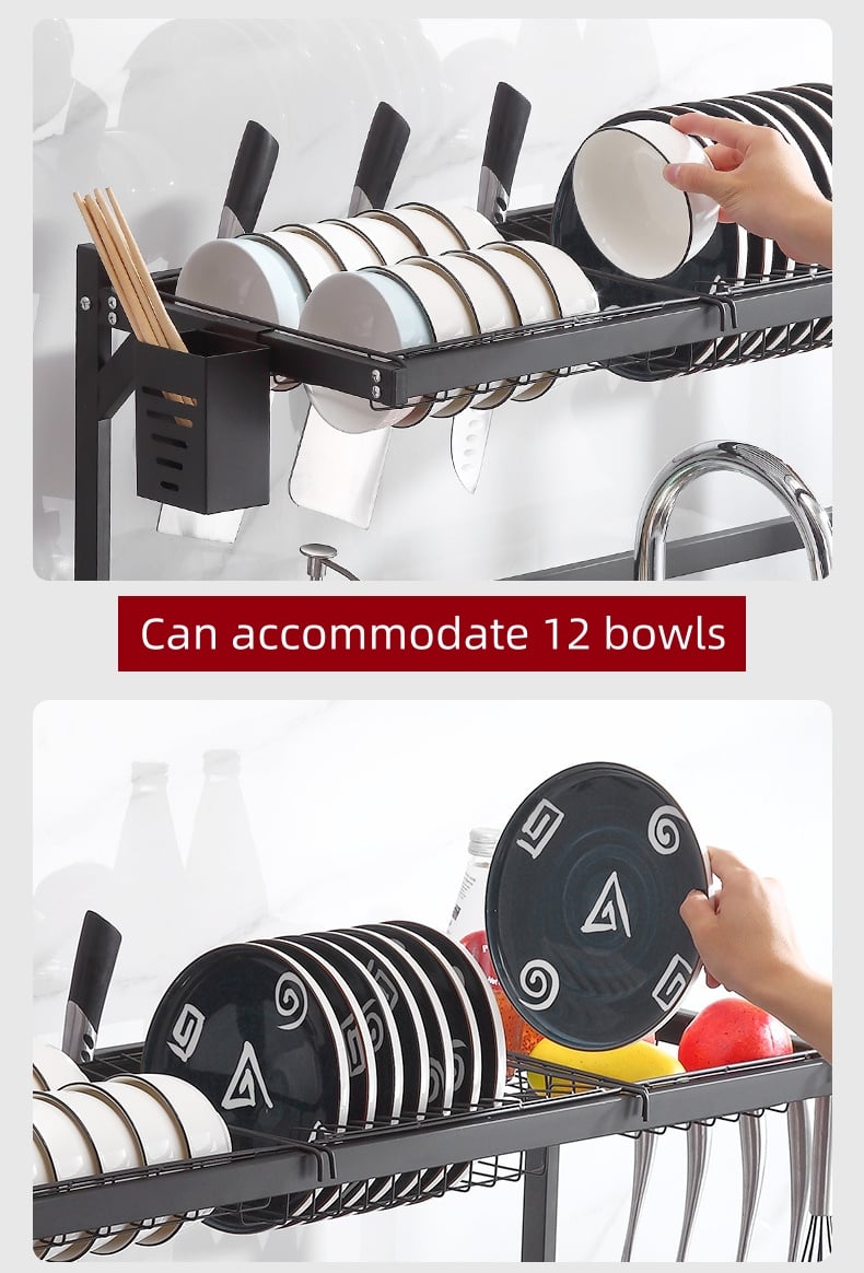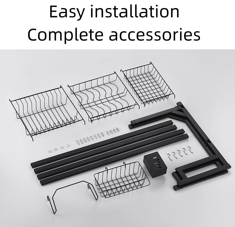 Easy assembly and parts included - The dish drainer is easy to assemble and clean, and sturdy enough to support the weight of dishes on the countertop. Set includes dish rack x1, bowl rack x1, utensil holder x1, shelf x1, hooks x5, assembly tools x1 and instruction sheet x1.