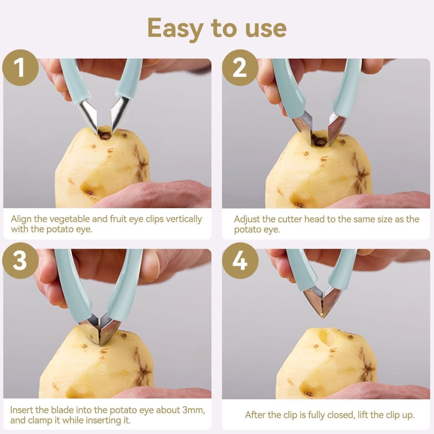 Premium Material: 420 stainless steel, Strawberry Huller Eye Peeler is edge anti-corrosion, anti-rust, anti-oxidation, make sure fruit and vegetable safety and healthy.
