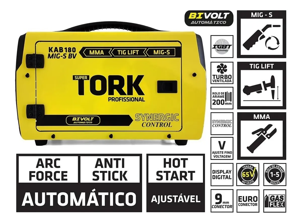 Tork Mig Mma Tig 180a 3 em 1 Soldador Inversor Bivolt