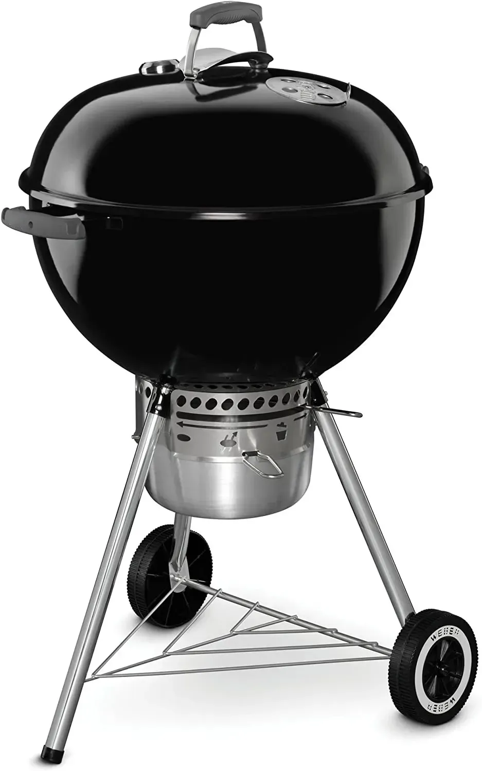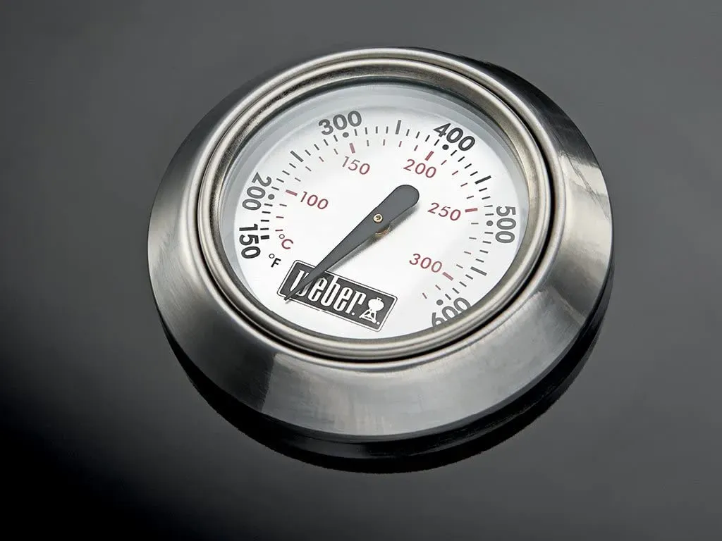 Holds up to 13 burgers made with a Weber burger press; Built-in lid thermometer. Rust-resistant aluminum dampers